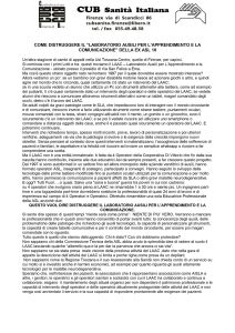 Leggi tutto »COME DISTRUGGERE IL “LABORATORIO AUSILI PER L’APPRENDIMENTO E LA COMUNICAZIONE” DELLA EX ASL 10